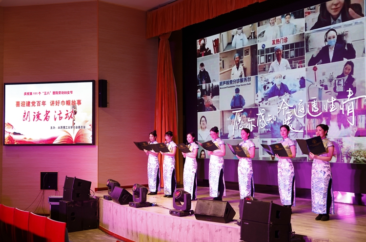 朗读者活动在传统华服《春意秀雅》中拉开唯美大幕。随后,15个基层工会选派的62名女教职工走上舞台,围绕 “建党百年”、“转型发展”和“双一流”建设,从不同角度切入,分享她们在教学科研、管理服务、疫情防控、脱贫攻坚等工作中立足岗位当先锋、履职尽责做表率的感人故事。讲述主题鲜明,时代气息浓烈,富有感染力和欣赏性,充分展示了我校女教职工的精神风貌和爱党爱国爱校的深厚情怀,赢得了现场观众的阵阵掌声。
